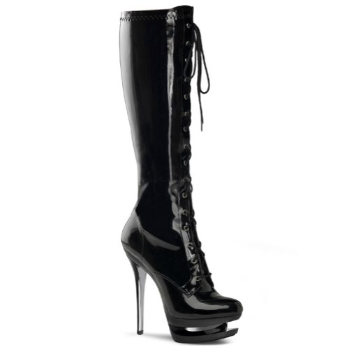 6 Inch Stiletto Heeled Boots Black Knee High Patent Boots Cut Out Platform Size: 6 Colors: Black
